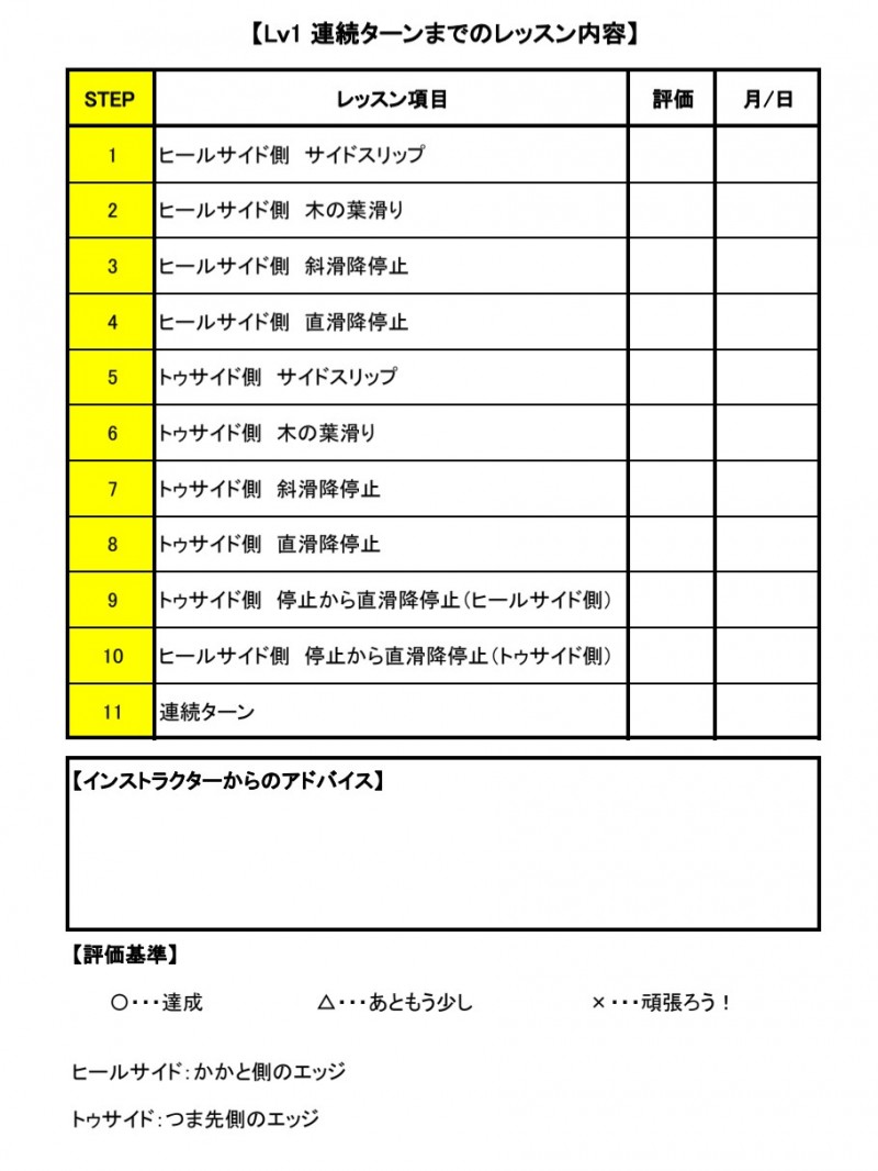 実際のレッスンは、【レッスンスキル達成表】に基づいて進めていくのでお客様もレッスン目標達成までに何が必要なのかが明確です。