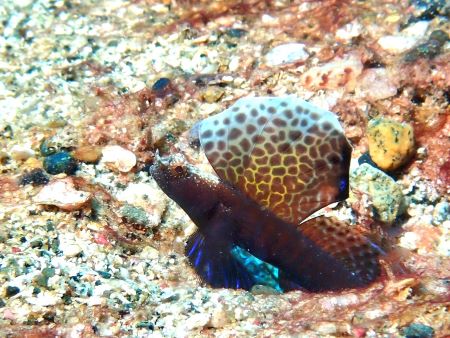 まいど~まるちゃんです サンゴの隙間を棲みかとする本種。 赤い体色に黄色のマダラ模様がある綺麗な小型のカサゴです。 丸くて大きな目が可愛いですが カサゴなのでもちろんヒレに毒有り 『触らぬ神に祟りなし』です 串本でも見れるみたいですが個人的に見たことはなく柏島で見ることが多いです 【写真にひとこと】 サンゴの隙間にいるためストロボ光が回りにくい被写体ですが カメラ目線の表情をばっちり捉えたナイスショットであります ほな さいなら