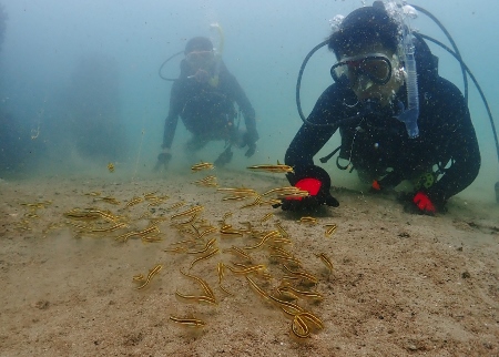 ここは南国か 浅場のソラスズメダイが群れまくり 11月後半の海やでー